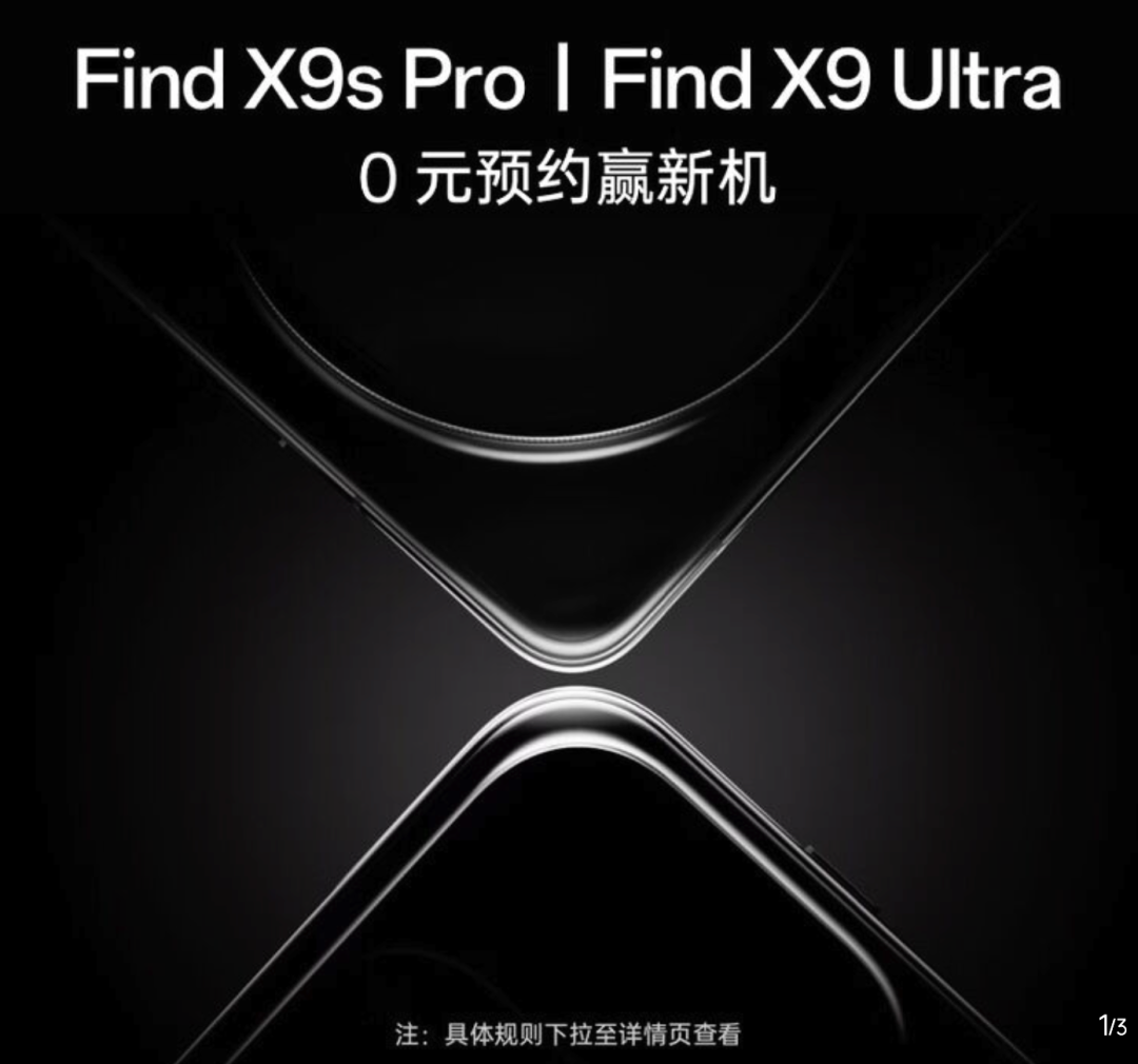 OPPO Find X9 Ultra、Find X9s Pro 手机以及 Pad Mini 小平板现已在开启新品预约,预计 4 月亮相,价格均未公布。